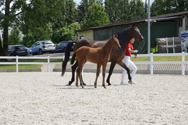 Ten pełen temperamentu, skoczny klaczka z imponującym galopem, jest córką prestiżowego ogiera Lausitzer. Ojciec, Lausitzer, łączy nowoczesną genetykę, szlachetność i sportową wszechstronność w doskonałej harmonii. Zdobył on ocenę 9,23 za skoki podczas HLP! W turnieju Lausitzer potwierdził swoje możliwości, m.in. zwyciężając w DSP Springpferdechampionat w Nördlingen oraz odnosząc zwycięstwa i wysokie miejsca aż do klasy S. Jego własna sportowa forma przekłada się na sukcesy jego potomstwa – wielokrotnie wygrywały w konkursach młodych koni, a do tej pory wyhodował czterech uznanych synów. Pierwsze pokolenie potomstwa Lausitzera odnosi sukcesy na arenach turniejowych. Ojciec Lausitzera, Lahnstein, reprezentuje aktualnie bardzo popularny rodowód od światowej mistrzyni DSP Alice. Matka oferowanego źrebaka jest córką Cheetano – konia o wybitnych predyspozycjach skocznościowych, pochodzącego z prestiżowego rodu Holsteinerów, z sukcesami w sporcie dużej klasy, wywodzącego się z Coriano / Corrado I. Wygląda na to, że dla tego pełnego temperamentu klaczyki droga do skoków jest już jasno wytyczona. Prosimy o wyłącznie telefoniczne zapytania pod numer: 00491716429595.