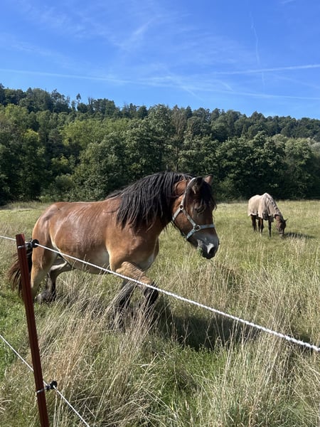 Verkaufe eine wunderschöne Rheinisch-Deutsches Kaltblut Zum Verkauf steht eine typvolle Rheinisch-Deutsche Kaltblut Stute, geboren im Jahr 2023. Sie besticht durch ihr beeindruckendes Stockmaß von aktuell ca 170 cm und ihren ausdrucksstarken Gängen. Sie überzeugt durch ihre freundliche Art und ihr angenehmes Temperament. Ihr stehen für die Zukunft alle Wege offen - ob Waldarbeit, Kutsche oder Geritten im Freizeit Bereich. Für die Zucht ist sie auch interessant, durch ihre gute Abstammung. Die Stute ist gesund, regelmäßig dem Schmied vorgestellt und Verladefromm. Bei Interesse oder weiteren Fragen stehe ich Ihnen gerne zur Verfügung.