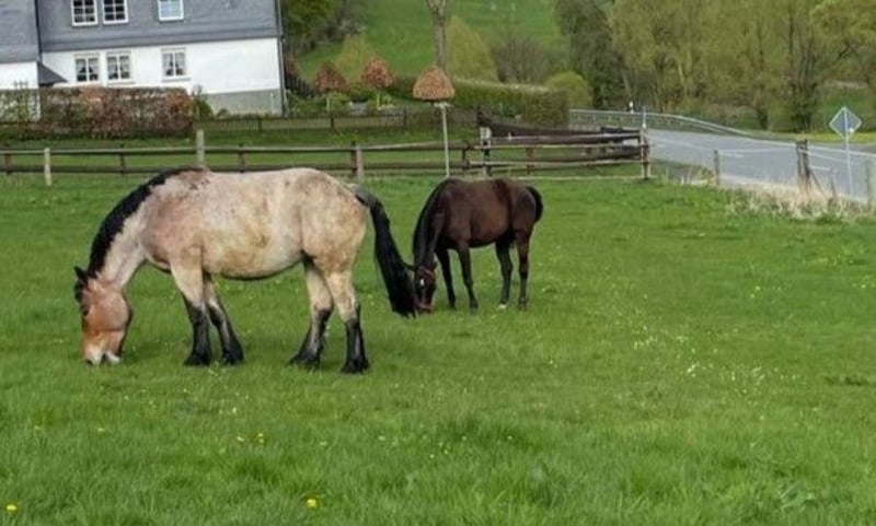 Amira is zeer mensgericht, knuffelig, speels en nieuwsgierig. Ze houdt van wandelingen en toont zich daarbij absoluut onbevreesd – tractoren, blauwlicht, sirenes of toeterende vrachtwagens vormen geen enkel probleem. Ze kan alleen blijven en ook zelfstandig wandelen. Amira kent grondwerk en longeerlijnen, maar haar wandelingen geven haar duidelijk meer plezier. Ze is gemotiveerd om te leren, maar vanwege haar grootte en onervarenheid is een duidelijke omgang noodzakelijk. Ze is niet bereden, maar kent het gewicht van een ruiter op het rijbaan en in het terrein. Het afgelopen jaar hebben we weinig gedaan, daarom wordt ze als onervaren aangeboden. Met de juiste training wordt ze een geweldige vrijetijdsmaat voor buitenritten of zelfs een koetspaard. De hoefverzorging en het laden op de trailer gaan met wat geduld. Momenteel staat Amira in een paddock met 24/7 weidegang in de zomer, direct bij de stal. Ze kent ook boxenstallen. In de kudde neemt ze een middenpositie in. Belangrijke mededeling!! – Ekzemerpferd Amira heeft twee jaar geleden een ernstige insectenallergie (zomersekzem) ontwikkeld. Ondanks diverse maatregelen is er tot nu toe geen optimale oplossing gevonden. In de paddock is ze niet volledig beschermd tegen muggen. Een andere huisvestingsvorm of een regio met minder muggen zou daarom gunstig zijn. In de winter ondervindt ze geen problemen. Een allergietest en een bloedonderzoek uit 2024 liggen klaar. Plaats gaat voor prijs – voor mij is een liefdevol en passend thuis voor Amira het allerbelangrijkste. Als de klik er is, komen we zeker tot een goede prijsafspraak. PS: Op de foto’s zijn manen en staart vrij kort en dun, dit komt door het zomerseekzem en de jeuk.
