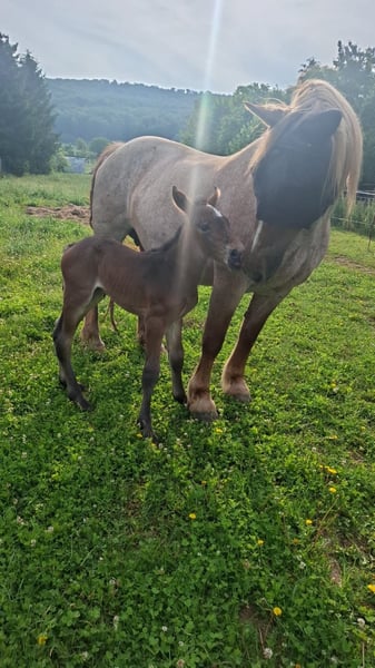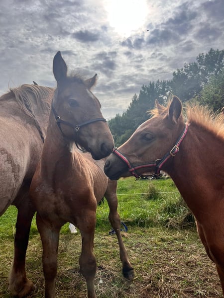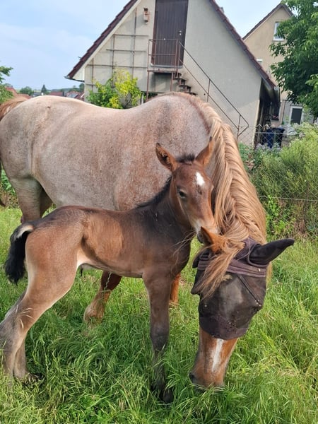 Kaltblut Hengstfohlen – kräftig, gesund und typvoll Geboren am: 15.Juli.2025 Farbe: Farbwechsler Unser wunderschönes Kaltblut-Hengstfohlen mit tollem Gesicht und Abzeichen am Kopf,steht in liebevolle, fördernde Hände zum Verkauf. Er zeigt sich äußerst menschenbezogen, lernfreudig und brav im Umgang. Schon jetzt überzeugt er mit einem harmonischen Gebäude, kräftigen Gelenken und dem typischen, klaren Kaltblutcharakter. • gesund, korrekt entwickelt und Zaunsicher • neugierig und mutig • steht im Herdenverband Bei ernsthaftem Interesse freuen wir uns über eine Nachricht oder einen Besuchstermin. Das Fohlen kann selbstverständlich bei uns vor Ort besichtigt werden. Muttertier und Vater sind ebenfalls bei uns in den Händen und können auf Wunsch besichtigt werden. MfG