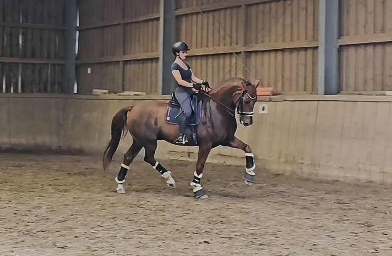 Aus familiären Gründen steht dieser ausdrucksstarke Wallach mit Herz aus Gold zum Verkauf! Sein tadelloser Charakter gepaart mit sehr guten GGA und einer großen Leistungsbereitschaft machen ihn zu einem wunderbaren Parter im Dressurviereck. Aber nicht nur dort weiß er zu gefallen. Er macht auch einen schönen Sprung und hat viel Spaß an jeglicher Arbeit. Ein richtiger Allrounder. Er läuft sicher alle Lektionen bis zur Klasse M, zeigt aber auch schon vielversprechende Ansätze für Piaffe an der Hand, Passage und Pirouetten. Auf dem Turnier wurde er bis M**-Dressur vorgestellt und ist bis L**-Dressur platziert. Eden zeigt sich sowohl Zuhause als auch auf den Turnier stets unerschrocken - ein Verlasspferd in jeder Hinsicht. Im Umgang ist er stets unkompliziert und weiß durch seinen liebenswerten Charakter Herzen zu schmelzen. Aufgrund eines zufälligen Befundes unter Wert.