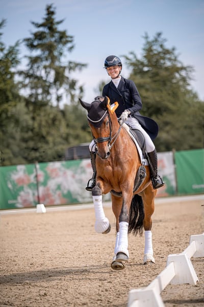 For sale is a highly successful 12-year-old Rhinelander gelding with excellent rideability and a temperament that is truly one of a kind. He is a winner up to S** level and has achieved 15 victories at Prix St. Georges level, including eight wins in the 2025 season alone, consistently scoring around 70%. He has been trained by the same rider since the age of five and has been carefully brought up through the Young Horse and Small Tour levels. He impresses with lightness, honesty, and reliability – always focused, sensitive to aids, and working with great enjoyment. Calm and obedient in training, relaxed at competitions, and dependable in the field. He loads easily, is well-behaved at the blacksmith, and handles all situations with ease. Ideal as a junior, young rider, or amateur horse. Also suitable for beginners or re-entrants, as he is very obedient, gentle, and balanced. Suitable as a family horse as well – a true schoolmaster that brings daily joy and helps his rider to develop further. Over two years ago, a health issue was discovered by chance, which has never affected him. He is fully active in sport – this condition is reflected in the price. Due to this, he is offered at a significantly reduced price – only to the best of hands. Inquiries please contact by phone or WhatsApp at +49 176 41674734.