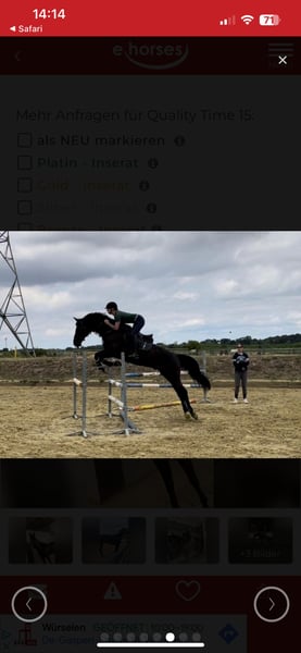 Zum Verkauf steht ein 13 jähriger Wallach. Aus beruflichen Gründen nur in beste Hände abzugeben. Er ist 1,25 m platziert, würde ihn aber ungern als reines Turnierpferd verkaufen, da er dabei immer sehr viel Stress hat. Er ist sensibel, und mit Go ausgestattet. Kein Anfänger oder Kinderpferd. In der Herde absolut verträglich. Platz vor Preis !!!