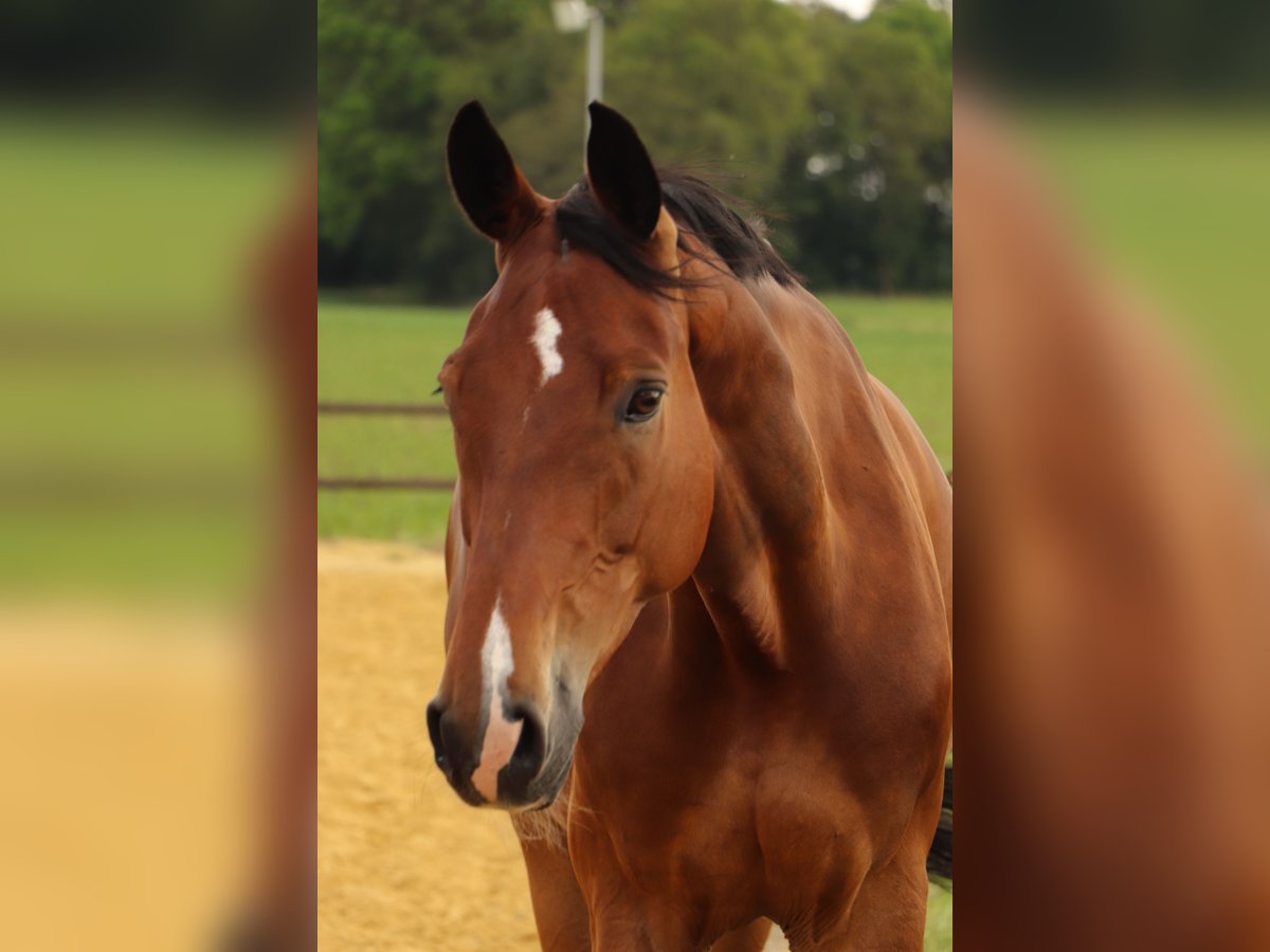 Cooper is a 14-year-old gelding, approximately 1.70 m tall, who has been out of sport since April 2024 due to an eye injury. He was able to spend the summer on pasture to give his injury time to heal. He is very sensitive and honest in handling, well-behaved, even when it comes to the farrier and veterinarian. I can easily imagine him in coaching, groundwork, circus exercises, and possibly leisure riding. He is familiar with rides in pairs or walking alone. Apart from his tendon issue, he is in excellent health and has no intolerances or allergies. Currently, he is not trailer-trained. I am looking for a lovely new home for him! Ideally, with a new activity that gives him purpose. Cooper is currently located in Brünen/Wesel.