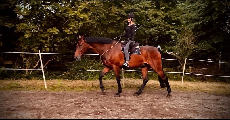 In campagna, è sicuro e piacevole da cavalcare, e ci dà molta gioia nel lavoro quotidiano. Abbiamo già fatto diverse uscite piacevoli, anche con pernottamento, attraverso la brughiera e la foresta di Werner, fino a Neuwerk (circa 20 km andata e ritorno). È sempre desideroso di imparare cose nuove e di fare felice il suo cavaliere.