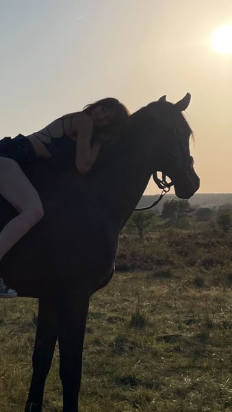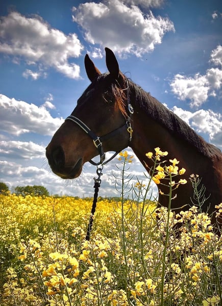 He is confident to ride in the field and brings a lot of joy in daily work. We have already enjoyed beautiful and further rides (some overnight) through the heath and the Wernerwald to Neuwerk (about 20km each way from the stable) and back. He is always eager to learn new things and to please his human.