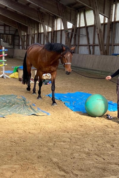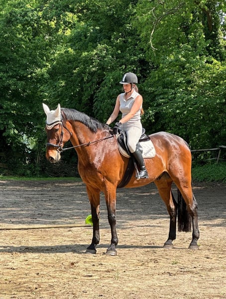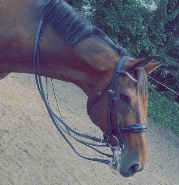 He actively competed in high-level show jumping until about 2.5 years ago, placing under a female rider in the S classes and in puissance jumping up to 2.20m. The resulting competition break was due to MY health condition, during which he continued to be worked and trained. He has NO vices in handling or under saddle, is fully HEALTHY (regularly checked by a veterinarian), and has not had any major injuries or illnesses so far. In the arena and on the trails, he always wants to go over the obstacle with his rider and will jump independently if necessary. I have never seen him refuse, and neither have his breeder, trainer, or previous riders experienced this with him.