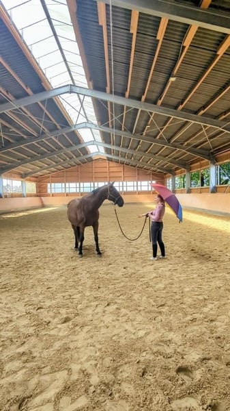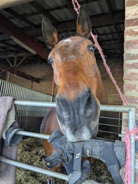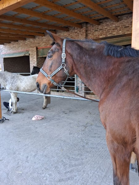 Leider muss ich nach 10 gemeinsamen Jahren meinen 22-jährigen Rheinländerwallach Rusty abgeben, da ich im aus gesundheitlichen Gründen nicht mehr so versorgen kann, wie ich es möchte. Er wird als nicht-reitbarer Beisteller abgegeben Wir haben uns ein bisschen mit Bodenarbeit beschäftigt, was sicherlich noch ausbaufähig ist und er brav macht. Auch Doppellonge kennt er grundsätzlich. Er kennt spazieren gehen (auch mit Hund) und auch Joggen an der Hand. Vielleicht würde er auch als Handpferd mitlaufen, wenn man es übt. Den Sommer über bis in den Herbst stand 24/7 auf der Wiese mit Unterstand in einer großen Wallachherde. Über den Winter in großzügiger offener Außenbox mit Paddock tagsüber. Er ist ranghoch, aber sehr sozial. Weitere Fragen beantworte ich gerne bei Interesse.