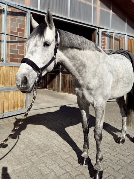 bildschöner Allrounder sucht ein neues zu Hause. Eckdaten: Turniername-Coutinio 9 Jahre alt Abstammung: Cornet’s Boy x Arpeggio Stockmaß-168cm L- Springen gewonnen / platziert. Curti ist superlieb im Umgang dennoch vielleicht nicht für „reine“ Anfänger geeignet. Macht in der täglichen Arbeit viel Freude, ist immer motiviert bei der Sache und lässt sich dressurmäßig fein reiten, daher für die Dressur auch interessant. Er kennt es auch im Gelände mit dem Fahrrad oder Hunden begleitet zu werden. Mit Curti hat man einen Partner der viel Freude bringt und dessen Potential sich im Turniersport zeigen kann. Dennoch kann ich mir Ihn auch gut als Freizeitpartner vorstellen, da er sich sowohl im täglichen Umgang als auch beim Reiten brav verhält. Ich wünsche mir für ihn einen Platz, wo er als Familienmitglied geschätzt wird und nicht als Sportgerät. Er möchte dazugehören, geliebt werden und regelmäßig bewegt und beschäftigt werden. Ein ideales Pferd für Reiter*innen, die nicht nur sportlich weiterkommen, sondern auch eine tiefere Verbindung zu ihrem Pferd aufbauen möchten. Curti wurde selbstverständlich regelmäßig geimpft, entwurmt und dem Hufschmied vorgestellt. Er ist verlade- und schmiedefromm sowie ekzemfrei. Kein Notverkauf – daher Platz vor Preis! Aktuelle Videos können selbstverständlich zugeschickt werden. Bei Interesse melden Sie sich bitte per WhatsApp oder Anruf unter 0160 5624942