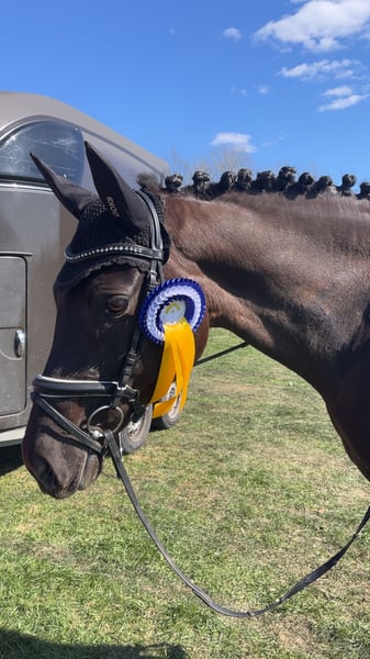 Die Stute ist A-siegreich und auch in Klasse L platziert.