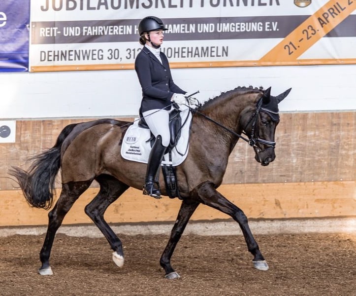Abstammend von Fürst Heinrich bringt sie nicht nur Qualität, sondern auch die nötige Einstellung für den Dressursport mit.