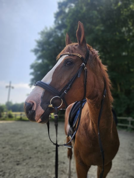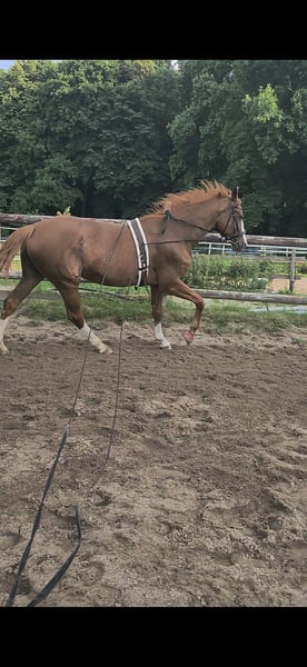 Hallo Wir geben unsere Stute Sunny wenn alles zu 1Tausend Prozent passt ab. Sie ist 2014 geboren und 1,69cm groß. Kein Anfängerpferd, wird nicht an Händler abgegeben und auch nicht an Züchter die Jährlich ein Fohlen wollen! Sie hat gute Papiere und hatte selber ein Fohlen. Sie ist wirklich toll zu reiten, sie kann einige Dressurlektionen. Sie hatte 2022 einen Fesselträgerschaden der ausgeheilt ist, dadurch darf sie nicht mehr gesprungen werden ist jedoch Dressurmäßig voll belast bar. Im Gelände ist sie wenn man reiten kann, ein richtiges Spaß Pferd. Kinder kann man geführt und an der Longe drauf setzen. Bei der Bodenarbeit ist sie ein absoluter Traum, sie ist sehr sensibel und reagiert auf alles was man macht und von ihr möchte. Freiarbeit, Doppellonge, Longe, Spazieren, Joggen, Handpferdereiten alles mit links. Bevorzugt würden wir sie in eine Offenstallhaltung geben aber aufkeinenfall in eine reine Boxenhaltung ohne ganztägigen Paddockgang. Bei Interesse gerne melden.