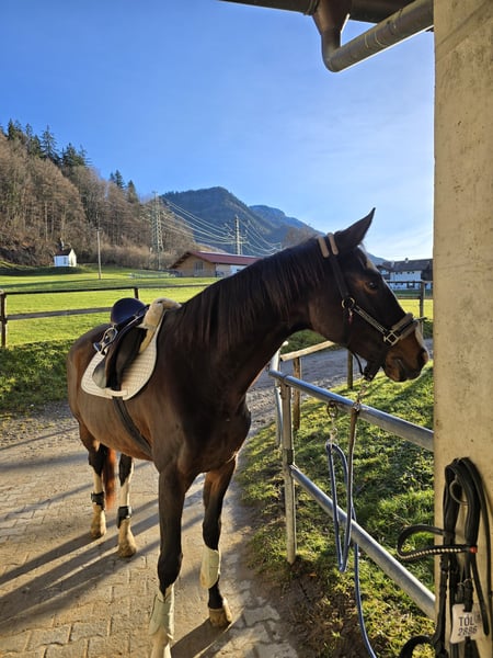 Poly ist kein Pferd für den schnellen Turniereinsatz von heute auf morgen, sondern ein Juwel für jemanden, der sie wieder antrainieren möchte oder eine sportliche Partnerin für die tägliche Arbeit und das Gelände sucht.