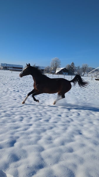 Poly is not a horse for quick tournament success overnight but a true gem for someone willing to retrain her or looking for a sporty partner for daily work and trail riding.