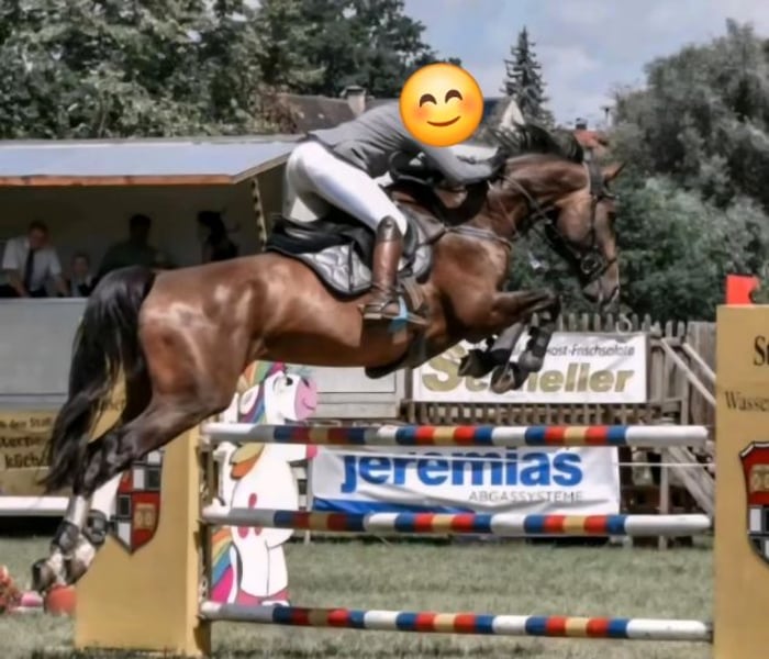 Rasse: Rheinländer Typ: Warmblut Geschlecht: Stute Alter: 14 Jahre Stockmaß: 166 cm Disziplin: Springen (Springpferde L erfolgreich) Weitere Disziplinen: Dressur Ausbildungsstand: Springpferde L Name: Poly’s Miss Blue AKU: Große AKU aus Oktober 2021 vorhanden Beschreibung Ich biete hier unsere ausgesprochen liebe und gutmütige Stute Poly’s Miss Blue zum Verkauf an. Poly ist ein sportliches Energiebündel mit Herz, die in der Vergangenheit erfolgreich in Springprüfungen bis zur Klasse L vorgestellt und platziert wurde. Charakter & Gelände Poly ist eine treue Seele, die eine enge Bindung zu ihrem Menschen sucht. Im Gelände ist sie zuverlässig und sicher, benötigt jedoch eine feste Bezugsperson, der sie vollständig vertrauen kann. Hat man ihr Vertrauen einmal gewonnen, geht sie mit einem durch dick und dünn – eine echte Lebensversicherung. Weitere Eckdaten - Sport: Springen bis L erfolgreich (aktuell Pause) - Typ: Sportlich, arbeitswillig, leistungsbereit, möchte immer gefallen - Gesundheit: Topfit, keine bekannten Mängel - Besonderheit: Liebt klare Bezugspersonen und enge Partnerschaft Fazit Poly ist kein sofort einsatzbereites Turnierpferd, sondern eine wundervolle Partnerin für jemanden, der Freude am Aufbau, am täglichen Arbeiten und an einer tiefen Bindung hat. Wer Zeit, Herz und Gefühl mitbringt, erhält eine treue, talentierte und motivierte Pferdedame, die ihrem Menschen stets gefallen möchte. Wir geben Poly ausschließlich aus privaten Gründen ab und Poly wird nur in gute Hände abgegeben! Sattel (NP: 3.400,00 €) und das komplette Zubehör wird gegen Verhandlungsbasis mit abgegeben!