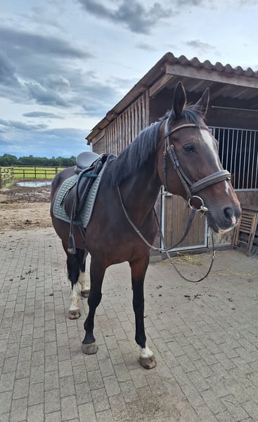 Aufgrund ihrer Abstammung auch gut für die Zucht geeignet Seit corona nur noch Freizeitmäßig zuhause auf dem reitplatz geritten, davor auf A-Niveau auch vereinzelt Turniere, kennt auch Geländehindernisse, leider aus Zeitmangel zu verkaufen