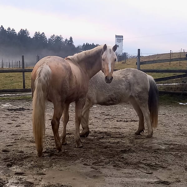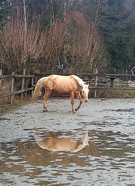 Unser Josua sucht einen neuen Wirkungskreis bei pferdebegeisterten und lieben Menschen, die Zeit für ein junges Pferd und dessen weitere Ausbildung haben. Er braucht auf alle Fälle eine Bezugsperson. Für Reitschulen ist er nicht das richtige Pferd. Er verträgt sich mit jedem Pferd und spielt gerne viel und ausgiebig. Er ist ein feines und sensibles Kerlchen mit einem Herz aus Gold. Er kommt dem Menschen immer zugewandt entgegen. Er ist neugierig, lernt gerne und schnell. Dabei ist er immer sehr bemüht und höflich. Er erblickte 2021 das Licht der Welt :-) Er stammt aus einer seltenen und gelungenen Kreuzung (Silver Dapple) mit guter Abstammung. Mutter Rocky Mountain Horse - Bekannt für Gelassenheit, sanftes Wesen und Komfort im Sattel. Vater Paso Fino - Geschätzt für Eleganz, Lernfreude und feine Reaktionsbereitschaft. Josua kennt Boden-, Trail- und Freiarbeit am Platz und in der Halle. So wie gemeinsam wandern und spazieren gehen, das ihm sehr viel Freude bereitet. Auch liebt er es als Handpferd mitgenommen zu werden in allen GGA. Hauptsache er ist mit dabei! Er hat wunderschöne und bequeme GGA. Er wurde im Herbst 2025 angeritten, vorwiegend im Gelände, in alle drei GGA. Wir haben im Februar wieder mit ihm unterm Sattel gestartet in der Halle und im Gelände. Er steht brav beim Auf- und Absteigen. Alleine im Gelände ist er aufgrund seines Alters und Ausbildungsstandes noch recht unsicher. Ängstlich ist er nicht. Er kennt es an der Straße entlang zu laufen und ist dabei sehr entspannt. Er kennt sämtliche Geräusche am Hof und Im Gelände. Er ist allgemein trittsicher und fleißig. Er ist überhaupt sehr unkompliziert. Ein absoluter Traum und Schatz für so ein junges Pferd. Da er so lieb und unkompliziert in seiner Art ist, könnten wir ihn uns später mal gut als Therapiepferd, WiedereinsteigerInnen, Anfänger oder Kinderpferd vorstellen! Derzeit braucht er noch mehr Substanz, Ausbildung, Training und Routine. Aktuell steht er im Offenstall mit Paddock Trail in einer kleinen Herde. Wir hätten noch einiges an Zubehör (Sattel, Trense (gebisslos), Halfter u. Strick, Putzkiste, Satteldecken, Regen- und Winterdecke, Hufschuhe) für Ihn mit abzugeben. Weitere Informationen und Bilder gerne auf Anfrage. Ein liebevolles und pferdegerechtes Zuhause hat für uns Priorität. Händler und Reitschulen brauchen sich erst garnicht zu melden. Wir freuen uns über euere Nachricht, bei Interesse an Josua.