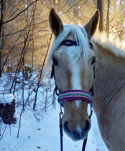 Our Josua is looking for a new environment among horse-loving and caring people who have the time to further train and develop a young horse. He definitely needs a consistent handler. He is not suitable for riding schools. Josua gets along well with other horses and enjoys playing and exploring extensively. He is a sensitive and refined young horse with a heart of gold. He always approaches humans with curiosity and friendliness. He learns quickly and eagerly, always striving to do his best and behaving politely. Born in 2021, Josua comes from a rare and well-bred crossbreed (Silver Dapple) with excellent lineage. His dam is a Rocky Mountain Horse, known for its calm demeanor, gentle nature, and rider comfort. His sire is a Paso Fino, appreciated for elegance, eagerness to learn, and fine responsiveness. Josua is familiar with ground work, trail riding, and free lunging both in the arena and on the pasture. He also enjoys walks and hikes with his handler, which bring him great joy. He loves being a lead horse in all groundwork exercises. His gait is beautiful and comfortable. He was backed in autumn 2025, mainly in the terrain, in all three gaits. We resumed riding in February, working with him in the arena and on trails. He stands patiently for mounting and dismounting. Due to his age and training level, he is still somewhat unsure when riding alone in the terrain, but he is not afraid. He is used to walking along roads and remains very relaxed. He knows all the sounds on the farm and outdoors. Overall, he is sure-footed, diligent, and very uncomplicated. An absolute dream and treasure for a young horse like him. Because of his gentle and easy-going nature, we can imagine him later as a therapy horse, for reintegration riders, beginners, or children. Currently, he still needs more substance, training, and routine to progress further. He is currently kept in an open stable with a small herd in a paddock trail. We also have some accessories (saddle, bitless bridle, halter and lead rope, grooming box, saddle pads, rain and winter blankets, hoof boots) available for him. More information and pictures are available upon request. A loving and horse-friendly home is our top priority. Dealers and riding schools need not contact us. We look forward to hearing from you if you're interested in Josua.