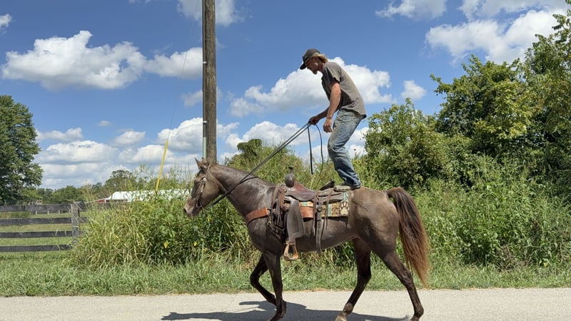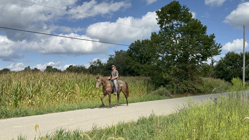 "VERFÜGBAR BEI DER ONLINE-PFERDEAUKTION UNTER www DOT MagicHorseAuction DOT com DAS GEBOT IST JETZT OFFEN BIS DIENSTAG | 16. SEPTEMBER! - SOFORTKAUF VERFÜGBAR! *Der endgültige Preis wird auf der Auktionsseite festgelegt* KONTAKTINFORMATIONEN DES EINLIEFERERS: Zach Brandenburg 513-508-3684 STANDORT: Moscow, OH Lady ist eine wunderschöne champagnefarbene Rocky Mountain Stute, die 11 Jahre alt ist und etwa 14,3 Hände groß ist. Lady ist ein erfahrener Trail-Pferd mit einem seidenweichen Gang, der natürlich und leicht zu sitzen ist. Lady geht alleine und in Gruppen jeder Größe, sie ist ein gut proportioniertes Pferd mit einem hübschen, stämmigen Körperbau, freundlich und willig am Boden und mag die Aufmerksamkeit ihrer Menschen, ist aber nicht beißig oder unhöflich. Sie steht brav für Bäder, Pflege, Satteln und Aufsteigen, Lady lädt problemlos und transportiert ruhig. Sie wurde auf einwöchigen Trail-Ritten mitgenommen und ist an Satteltaschen, Trail-Hunde und Picket-Linien gewöhnt. Sie ist derzeit beschlagen, war aber bei der vorherigen Besitzerin barfuß."