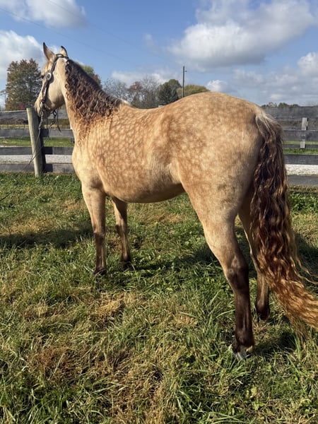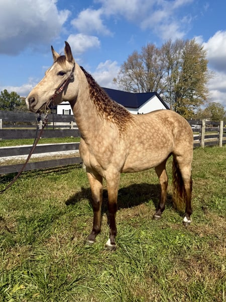 " AVAILABLE ON ONLINE HORSE AUCTION AT www.MagicHorseAuction.com BIDDING OPEN NOW thru TUESDAY | JANUARY 20TH! BUY IT NOW AVAILABLE! *Final price will be determined on auction site* CONSIGNOR CONTACT INFO:Zach Brandenburg # 513-508-3684 LOCATION: Moscow Ohio " Ivory is an absolutely stunning buckskin mare that is coming 5 years old and stands 14.2 hands tall. This mare is always turning heads no matter where we go with her, Ivory has an incredibly smooth gait that does not move you in the saddle. She walks when asked and has a smooth canter that’s very easy to sit. Ivory goes where you point her without hesitation and always aims to please. Ivory isn’t a deadhead but she is a fun horse to ride and gives you her all every trip out. She’s peaceful to be around and loves to petted and groomed. She’s great for the farrier and all and all is just a nice horse to have around.