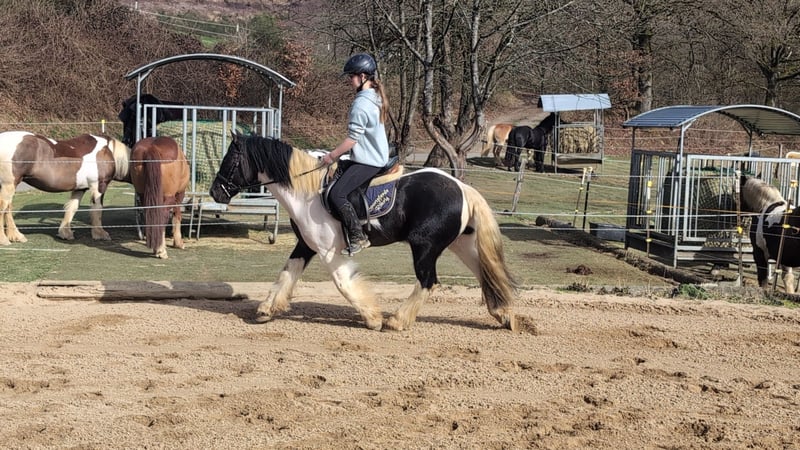 Paddy is a very friendly gelding who would be perfect for riding lessons or as a wonderful family horse. He is familiar with the arena and the surroundings in all three gaits, and he even jumps small natural obstacles. He knows how to use side reins and is well-behaved on the longe line. During the day, he is kept in a mixed herd. For further questions, please contact us by phone or WhatsApp at 015122313319.