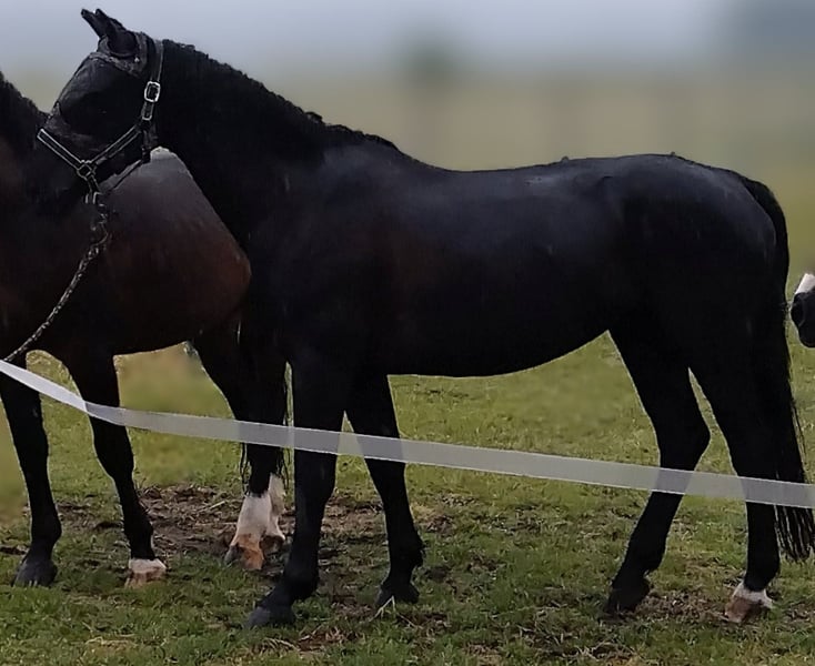 Zum Verkauf steht eine 11 jährige Rappstute, 1,63 m groß und deshalb für Umsteiger besonders geeignet. Sie ist seit 4 Jahren in unserem Besitz und wurde davon 3 Jahre überwiegend von Reitanfängern geritten. Seit Mai 2025 wird sie in der Dressur und im springen weiter gefördert und entwickelt sich täglich weiter. Zweimal wurde sie auf einem internen Turnier vorgestellt, Ende 2025 hat sie dann an einem 60 und 80 cm Springen auf einem öffentlichen Turnier teilgenommen. Im Gelände in der Gruppe ist sie sehr entspannt und unerschrocken, mit ihr macht ausreiten einfach nur Spaß. Wir wünschen uns für sie einen Menschen, der Spaß hat sich gemeinsam mit ihr weiterzuentwickeln. Eine aktuelle AKU aus Dezember 2025 mit Röntgenbildern liegt vor. Bei Interesse und zum Probereiten melden sie sich gerne unter folgender Telefonnummer 0160-99016246