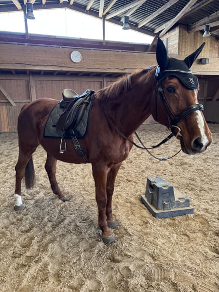 Liebe 25-jährige Fuchsstute abzugeben • ca. 1,62 m Stockmaß, barhuf • lebt im Offenstall und möchte auch weiterhin so gehalten werden • schmiede- und verladefromm • regelmäßig bei Tierarzt, Zahnarzt & Osteopath • kennt Hunde, Kinder, Traktoren usw. • kennt Sattel und Trense, wurde in allen drei Grundgangarten gearbeitet • hatte vor 11 Jahren ihr letztes Fohlen • lernwillig in der Bodenarbeit • sie ist geländesicher und ihr merkt man das Alter im Gelände null an • sie ist für Anfänger und Wiedereinsteiger geeignet • komplettes Zubehör kann zusätzlich erworben werden ❗️ Keine Reitschulen, Schlachter oder Händler❗️ Bitte nur ernsthafte und realistische Anfragen.