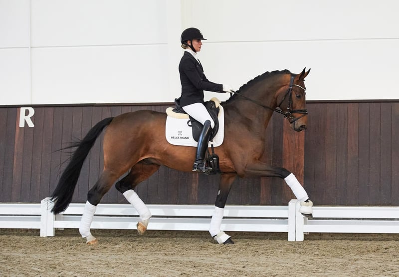 Son of Benicio out of a well-proven dam line “A stallion with three exceptional paces. He always presents himself in an uphill and balanced manner with a lot of power. He has a lot of qualities that make him desirable for dressage sport," enthused Heike Kemmer about Be Sure on behalf of the Hanoverian licensing committee. The noble bay stallion, with an amazing presence, was not only called to the premium ring of the year's best stallions in Verden, but was also, by far, one of the most sought-after offers of the stallion market. At the second highest price, we were able to secure this dressage jewel for our stud and therefore our breeders. His sire Benicio won competitions up to Grand Prix with Jessica Lynn Thomas/SWE. His dam Hann.Pr.St. Susi Sorglos was champion mare of the show in Großenwörden and was placed at the Herwart von der Decken show (Ib) in 2017. His dam's sire Scuderia was Reserve Champion of the Oldenburg Spring Licensing in 2012 and is internationally successful in Young Rider dressage competitions. His grand-dam St.Pr.St. Lady Laurie is the full sister of the licensed stallion Le Louvre. She was also successful at the Herwart von der Decken show (Ic) and was named best half-blood mare in Elmlohe in 2008 and 2009. Exceptional rising star with great potential Semen order form Approved for: Hanover, Holstein Global, Mecklenburg, Oldenburg, Rhineland, Southern German stud books, Westphalia Stud fee: € 1.000,- (plus 7% VAT) WFFS negative