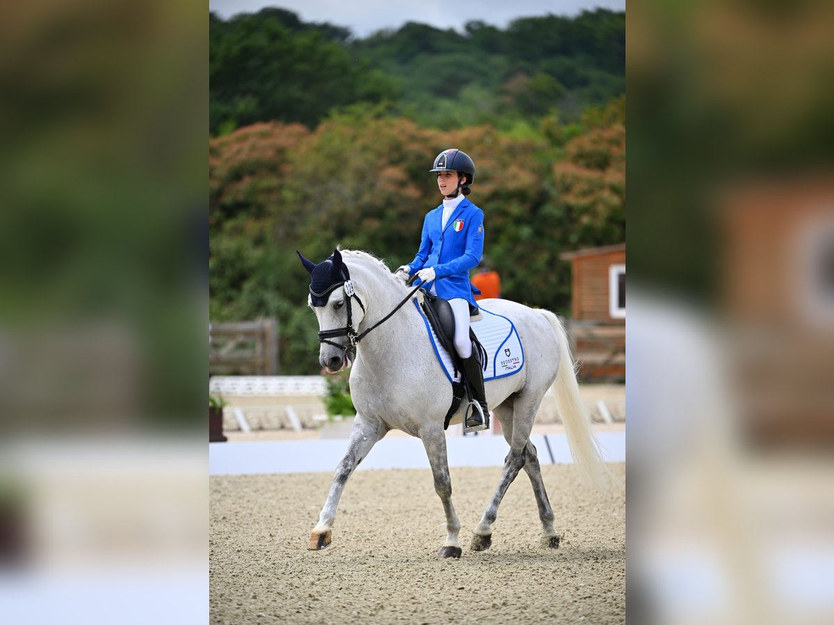 148 cm, 17 years old, gelding pony FEI by Minotauros x Foreverlove De Ce. This exceptional pony has previously been ridden by an Italian pony team rider. The rider is turning 16 and must transition to a horse. The pony has an impressive competition record: - Winner of the eventing championships in France 2019 - Winner of the eventing championships in France 2022 - Winner of the regional dressage championship 2023 - 1 international eventing win 2023 - 1 international dressage win 2024 - 1 international dressage win 2025 - Second place at the Italian dressage championships (2025) - Qualified and member of the Italian team for the European Dressage Championships 2024 - Qualified and member of the Italian team for the European Dressage Championships 2025 He has taken his current owner from "basic level dressage" to "winning at international competitions." This dream pony is gentle, confident, and classy! He is never aggressive or nervous and knows the medium/high level inside out. This pony would be ideal for a child with team aspirations.