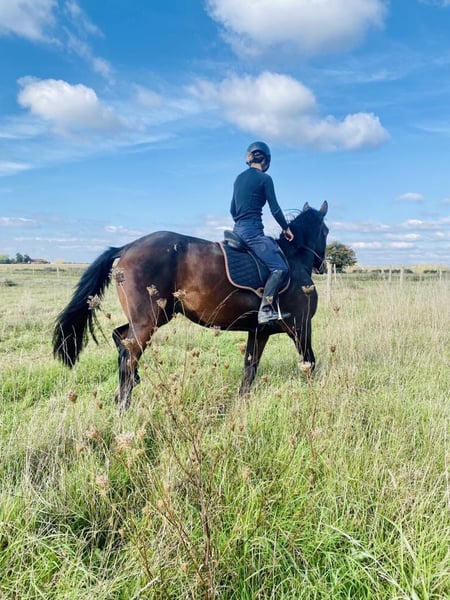 Young horse already shows great qualities over fences: honest, consistent, and diligent in his work. He currently jumps over poles with a good stride and solid technique. Easy to handle, he is well-behaved on the ground, respectful, and very close to humans. He also proves to be very calm during grooming, travels without issues, and is easy to shoe. Available for viewing in Saint-Aubin-sur-Gaillon. Transport can be arranged worldwide.