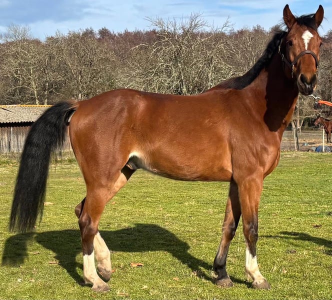 Selle Français castrone di 7 anni Nipote di Heartbreaker Padre vincitore di 1,35 m Madre con altezza di 1,40 m Altezza circa 1,60 m, modello leggero Direttamente dal suo allevatore Mai montato, ha fatto solo alcuni warm-up Pronto per iniziare subito la stagione a 1,10 m Cavallo molto moderno, con sangue, non si spaventa di nulla Genio della barra Da educare per arrivare a fare 1,30 m e oltre a lungo termine E vincere Visita veterinaria recentissima e ok