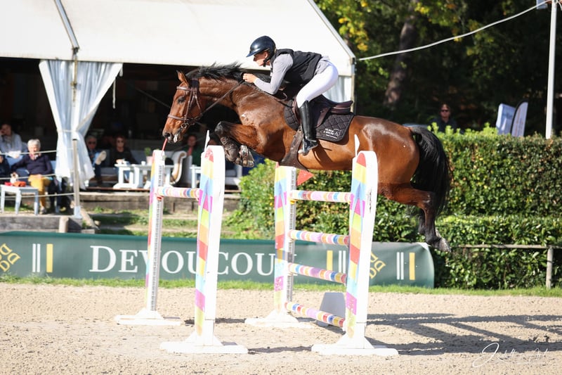 For Sale Gunner de l’Honel, Selle Français, 16.1 hh, 9 years old in 2025. This year, he has been regularly competing in Grand Prix classes at 1.40 m, with a debut at 1.45 m earlier this year. He is an extremely respectful horse, consistent in the ring with excellent style over the jumps, and very brave. He is an easy and reliable horse for an advanced amateur, suitable for 1.30 m / 1.35 m classes, making him ideal for ambitious amateurs or talented young riders looking to transition from ponies to horses and compete in children’s classes. He is very sociable and gentle with other horses. Currently, he lives in the paddock during the day and in a box at night, but he would also thrive living outdoors 24/7 with his paddock mates. Radiographs: 12 clean views And recent blood test: piro negative