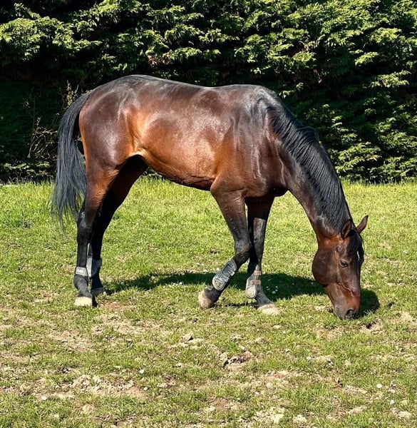 Gabab ist ein großartiges 9-jähriges Pferd, sächlich von Nabab de Rêve x Voltaire. Er wurde vom Anfängerreiter bis zum Profi geritten, bis in den Schwierigkeitsgrad 105 bis 110. Er ist sehr gut im Umgang, macht beim Scheren keine Probleme, schaut sich nichts an und hat vor nichts Angst! Sein Gesundheitscheck ist sehr gut.