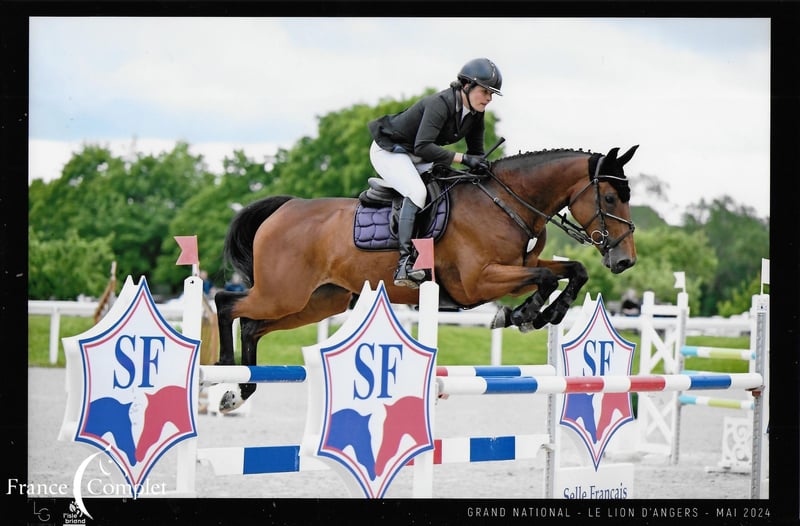 Free Vol de Mai is the uterine sister of Unetoile de la Serre, European Junior Champion, and the full sister of Vol'au Vent de la Serre, who has competed in show jumping up to 1.50 m and CSI 2*. Height: 16.1 hh Age: 10 years This mare is in excellent health, lives outdoors 24/7, has never been ill, and has never shown lameness. No special diet is required. She has an excellent jumping technique and top genetics. The mare is straight and honest in both show jumping and cross-country. Regarding her height, she has always been preserved and has the potential to jump larger courses in show jumping. The mare will be available at the end of the season after the 3* event at Pouget. Price including VAT