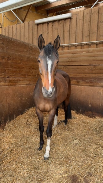 10-jährige Selle Français-Stute Vater: Canturo x Mutter: Tochter von Miguelette Freundliches Pferd mit viel Blut Respektvoll gegenüber der Stange, flexibel, schönes Exterieur ✅ Reitet alleine oder in Begleitung ✅ Geht alleine oder in der Gruppe auf Ausritte ✅ Alle Impfungen aktuell Preis – unter 13.000 € verhandelbar im Rahmen des Vernünftigen bei schnellem Abgang! (Grund: Studium)