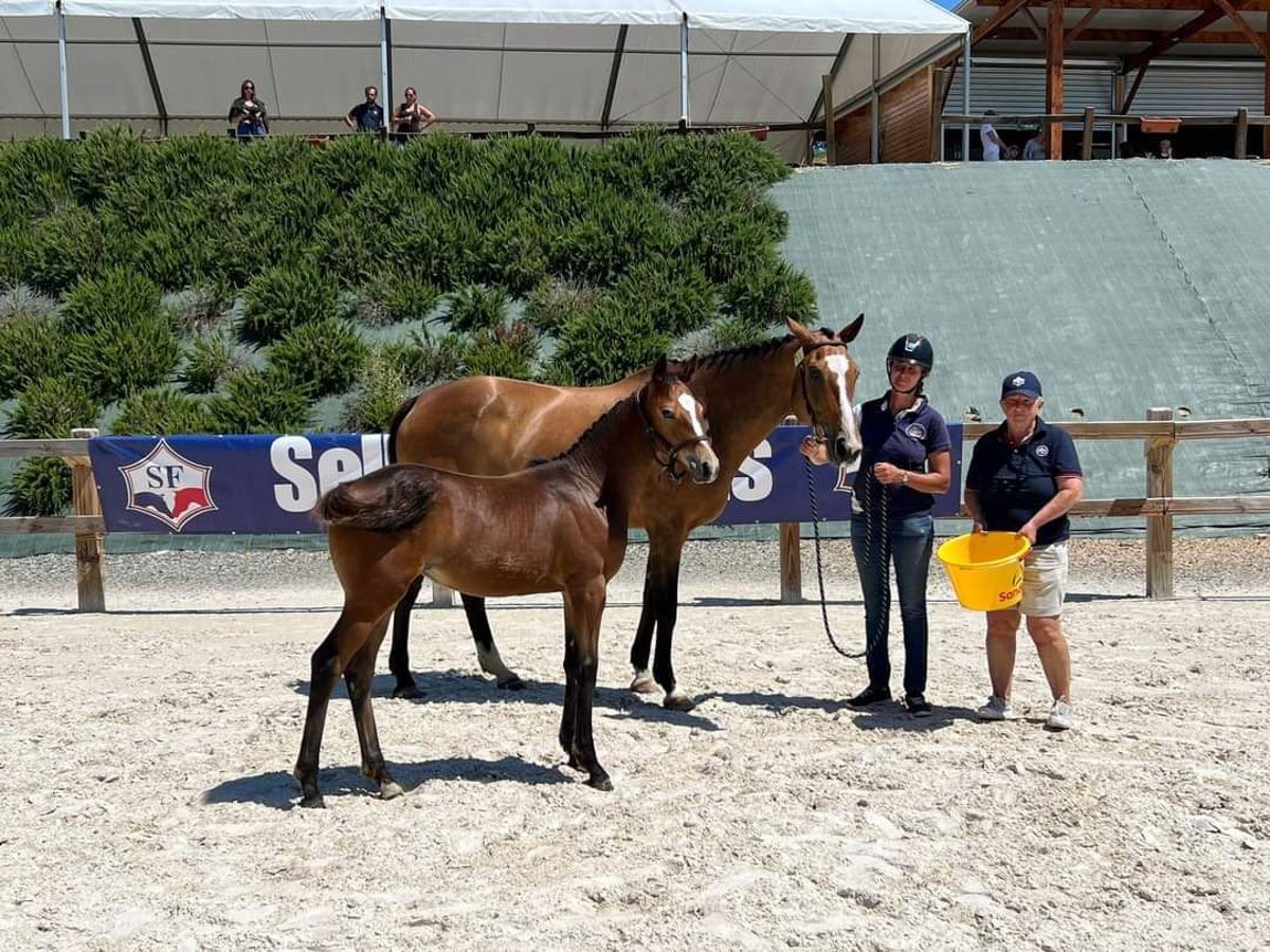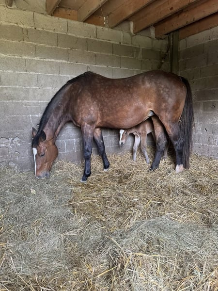 Jument, 16 ans, bai Selle français Par Garance Nantuel et Fastourel du Cap Elle a déjà produit 2 poulains, elle a rempli du premier coup pour les deux Facile à la mise bas Très bonne mère Très facile au quotidien, elle est gentille à s’occuper et voyage bien Elle possède 1 point pace Situé au alentour de Toulouse Plus d’information en MP