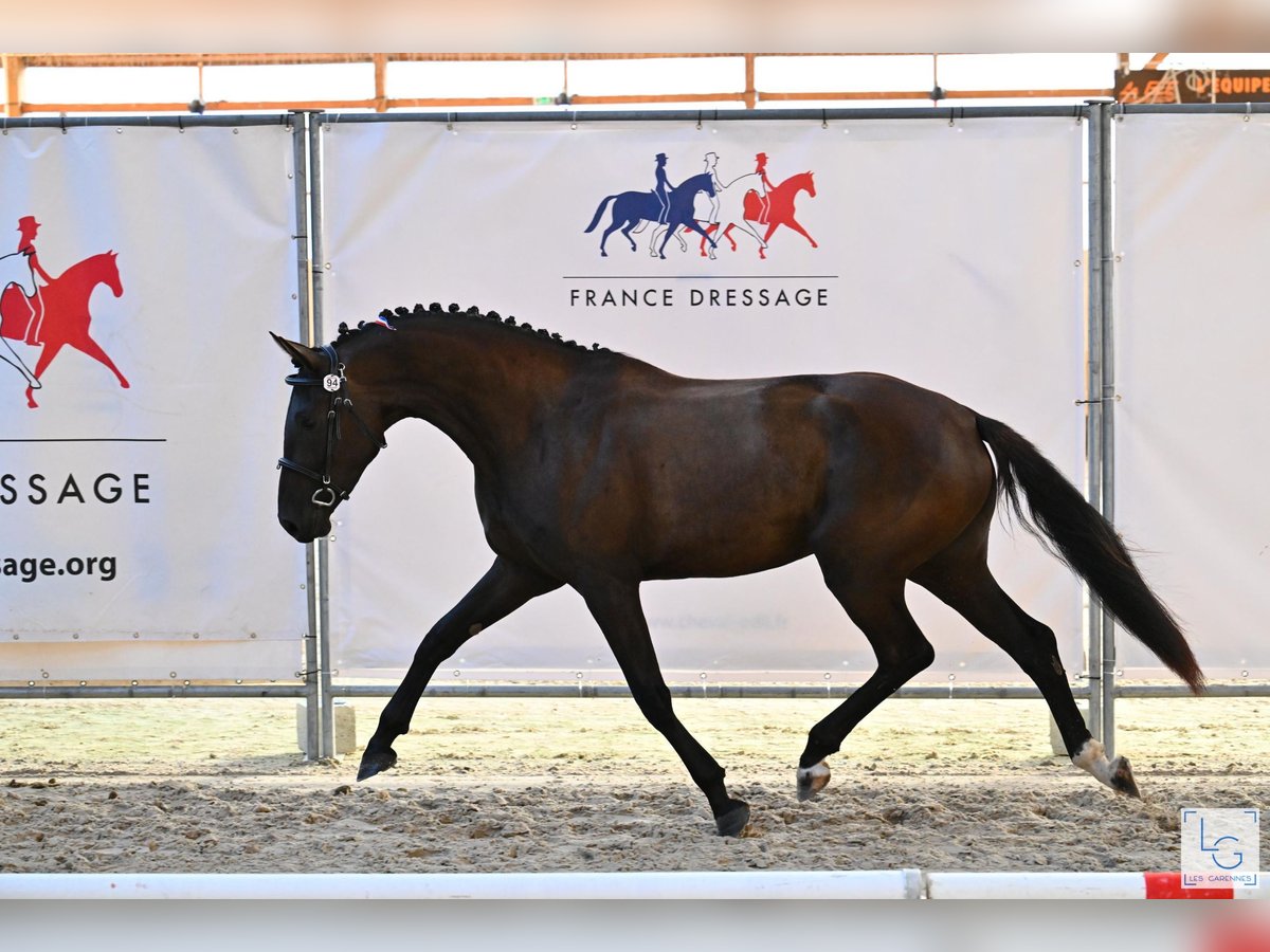 Jument en fin de débourrage chez Catherine Henriquet. Est arrivée 11ème à la finale France Dressage en 2025 où elle a été reconnu "toutes disciplines". A grandi 2 ans dans un troupeau de poulains de son âge afin d'être équilibrée mentalement. Apprends vite, aisément, bon mental.