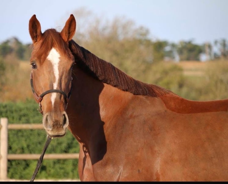 Jument Selle Français de 5 ans, par Farzack de l’Abbaye (performant jusqu’en 1.55m en Italie). Jument avec du cadre (env. 1m69), porteuse, présentant un très bon modèle pour le sport. Débourrée cet hiver, elle a débuté les concours il y a seulement 3 semaines. Elle totalise actuellement 7 parcours, avec déjà des résultats prometteurs : 4 points en 1m et en 1.10m (vidéo disponible). Montre beaucoup de respect à l’obstacle, ne regarde rien et dispose de réels moyens. Jument facile, bien dans sa tête, idéale pour évoluer rapidement. Avec une formation continue, elle est destinée sans problème à des épreuves 1.30m – 1.35m. Convient dès aujourd’hui à un cavalier niveau galop 6/7 souhaitant un cheval d’avenir.