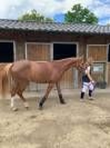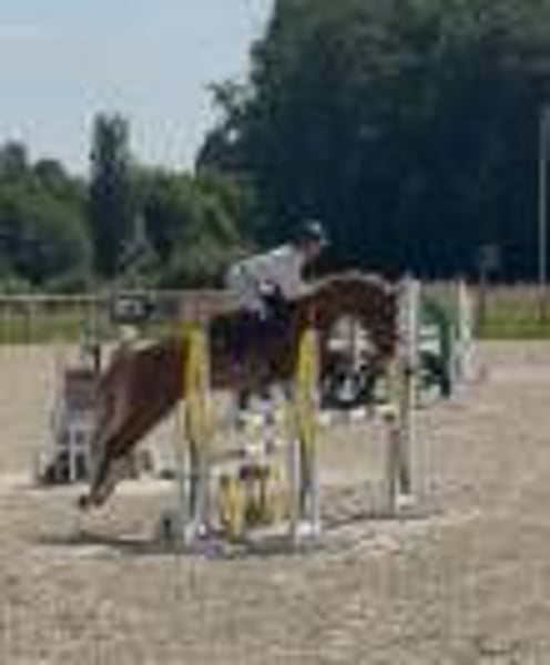 Jument alezane de 6 ans, toise environ 1m65. Par Ureys de Denat (jarnac) et Corrado du Montois. Déjà sortie jusqu'à 1m10 SF, potentiel pour am élite, pro 2. Jument gentille et pratique au quotidien, voyage en van ou petit camion.