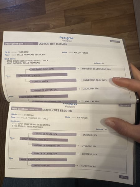 French Saddle Horse mare turning 8 this year. Gentle handling and easy to catch. Clipping and transportation all good. Vaccinations and deworming up to date. Regular care including dentist, osteopath, and massage. Hoofed and shod on all four feet. Lives alone or in a pair. Very sweet and affectionate mare. Has a lot of strength. Ready to jump at 110/115 cm. Good pedigree.