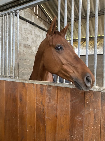 Happy du Banney jument de 8ans de 1m56 au garrot , ferrée Par Toldo du Banney et Nausicaa Delamotte par Rif du Crocq Jument très gentille et facile au quotidien sans vice , très attachante et affectueuse Jument avec du sang. Assurance vie , ne s’arrête jamais Jument très franche à l’obstacle, sort actuellement en 115/120 , potentiel 130 A participé à la grande finale à Fontainebleau durant l’année de ses 6ans (90% de sans faute) Tonte ✅ Transport ( van, VL, camion)✅ Balade seule ou à plusieurs ✅ Vie en box/paddock Peut vivre avec plusieurs chevaux ou poneys À jour des vaccins et des vermifuges Convient à un galop 5 minimum Visite vétérinaire et radio comprise dans le prix Ne partira que dans une famille 5⭐️⭐️⭐️⭐️⭐️
