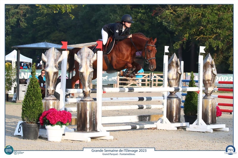 Happy du Banney, an 8-year-old mare standing 1.56 m at the withers, barefooted. Sired by Toldo du Banney and out of Nausicaa Delamotte by Rif du Crocq. A very gentle and easy-going mare in daily handling, with no vices, highly affectionate and attached. She has some bloodlines. She is a brave jumper, currently competing at 115/120 cm with potential for 130 cm. She participated in the grand final at Fontainebleau during her 6-year-old year, with 90% clear rounds. Clipped ✅ Transport available (van, small lorry, truck) ✅ Suitable for hacking alone or in company ✅ Lives in a box or paddock Can live with other horses or ponies Up-to-date on vaccinations and deworming Suitable for a rider at least at level 5 gallop Veterinary check and radiographs included in the price She will only be sold to a 5-star family.