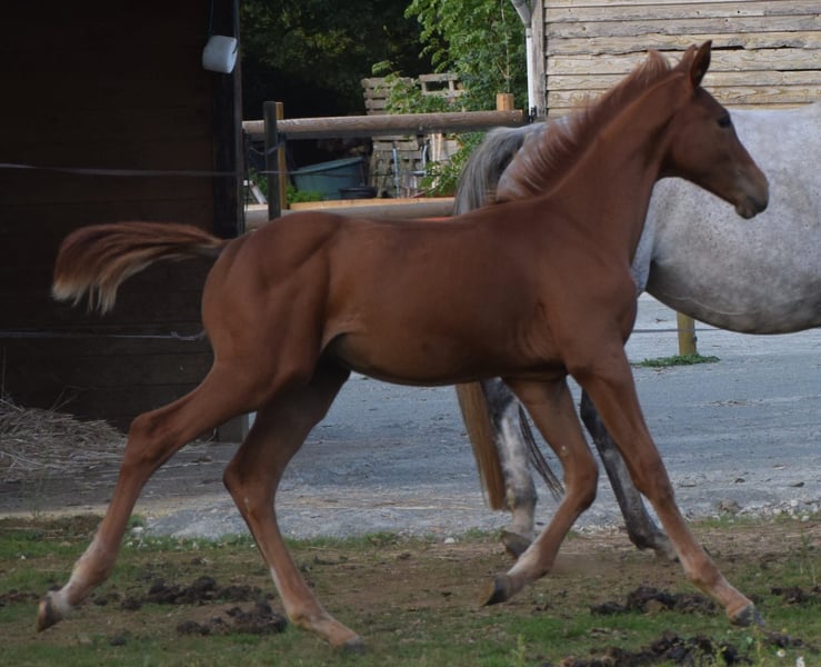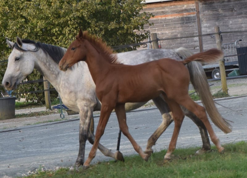 🚀 PROPOSED – Male CSO Foal by Highway TN N.O.P 🚀 Sarthe (72) | Born May 23, 2025 | Chestnut gelding Looking to invest in the future? Meet Pallas! Promising bloodlines for sport: ♂️ Sire: Highway TN N.O.P (Eldorado vd Zeshoek x Chellano Z) – A very modern stallion competing at the highest international level. – Renowned for his quickness over fences, respect, and exceptional intelligence at the jump. These qualities are passed on to his offspring, who are already making their mark on international young horse circuits. – His consistency is remarkable: he has jumped 24 clear rounds in a row and has won 4 Longines-ranking events. ♀️ Dam: Galiska de l’Ortier (Cicero Z x Dollar du Mûrier) Daughter of Cicero Z and Qurischka de l’Ortier (Dollar du Mûrier x Quat'Sous). A mare from a successful cross, unfortunately injured at age 3, which prevented her from pursuing a promising sporting career. GALISKA’s dam also produced Cécedille de l’Ortier, competing at 1.45m in the USA, and Eurêka, whose promising career was abruptly cut short. In addition to his champion pedigree, Pallas possesses all the qualities required (strength, balance, mental focus…) to become a horse of the future and, for the most ambitious, a breeding stallion. Pallas is a foal that will not leave you indifferent; he has a tremendous presence. Feel free to come and meet him. Videos available upon request of his dam, Cécedille, and Eurêka. Visible in Sarthe.