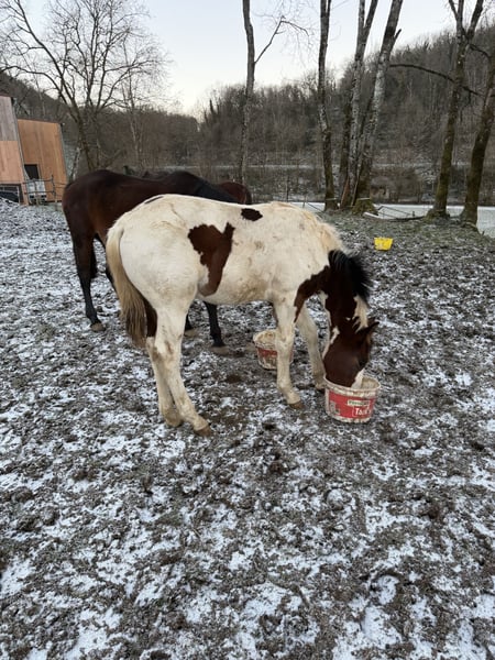 Poulain habitué à l’homme pansé régulièrement sera sevré courant mars
