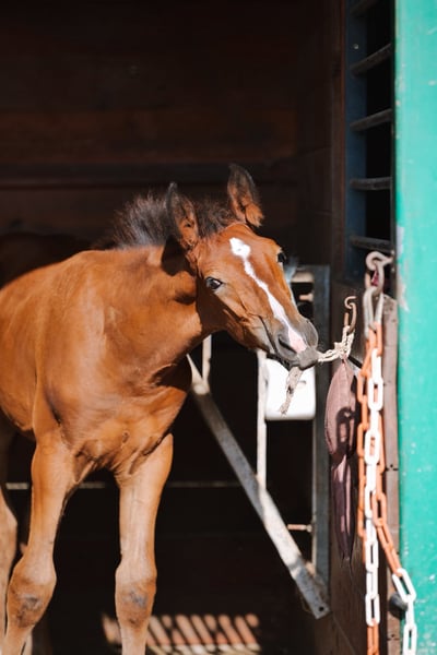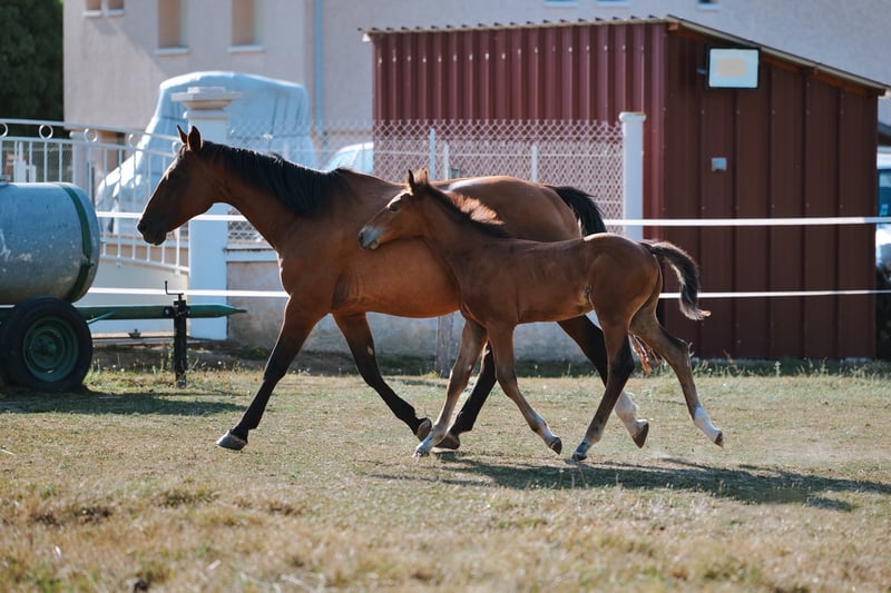 Popcorn d’Amea Gelding, Selle Français, bay, born 28/05/2025 By Chacco Blue II out of Venue de la Côte, ISO 123 (Négus de Talma (Quick Star) x Quadrige Romain) Popcorn is a very people-oriented and intelligent foal, well-handled, with a charming personality already developing. This is our first foal from our excellent mare Venue, a amateur-classified mare competing successfully every weekend, and a performance-oriented sire at 1.60 m. His pedigree is more than proven, featuring the bloodlines of Chacco Blue and Quick Star. Popcorn shows great promise for a sporting career, even for an amateur wishing to develop his future competition horse, thanks to the good temperament of both parents, their respect for the jump, strength, and courage. ⚡️ Breeding ⚡️ ▶️ Sire: Chacco Blue II is an elegant stallion with a strong, well-connected back and good joints. He displays suppleness, good front technique typical of Chacco Blue descendants, and good movement with an ample, well-balanced canter. He is expected to pass on his power, harmonious build, and ease under saddle. (Source: France Étalon) ▶️ Through this cross, we aimed to increase size while maintaining the steel-like mentality, easy temperament, and courage of the mare. Strength also appears to be a common trait of both parents. He will likely grow to over 1.65 m as an adult. Visible in Isère, Rhône-Alpes near Lyon airport