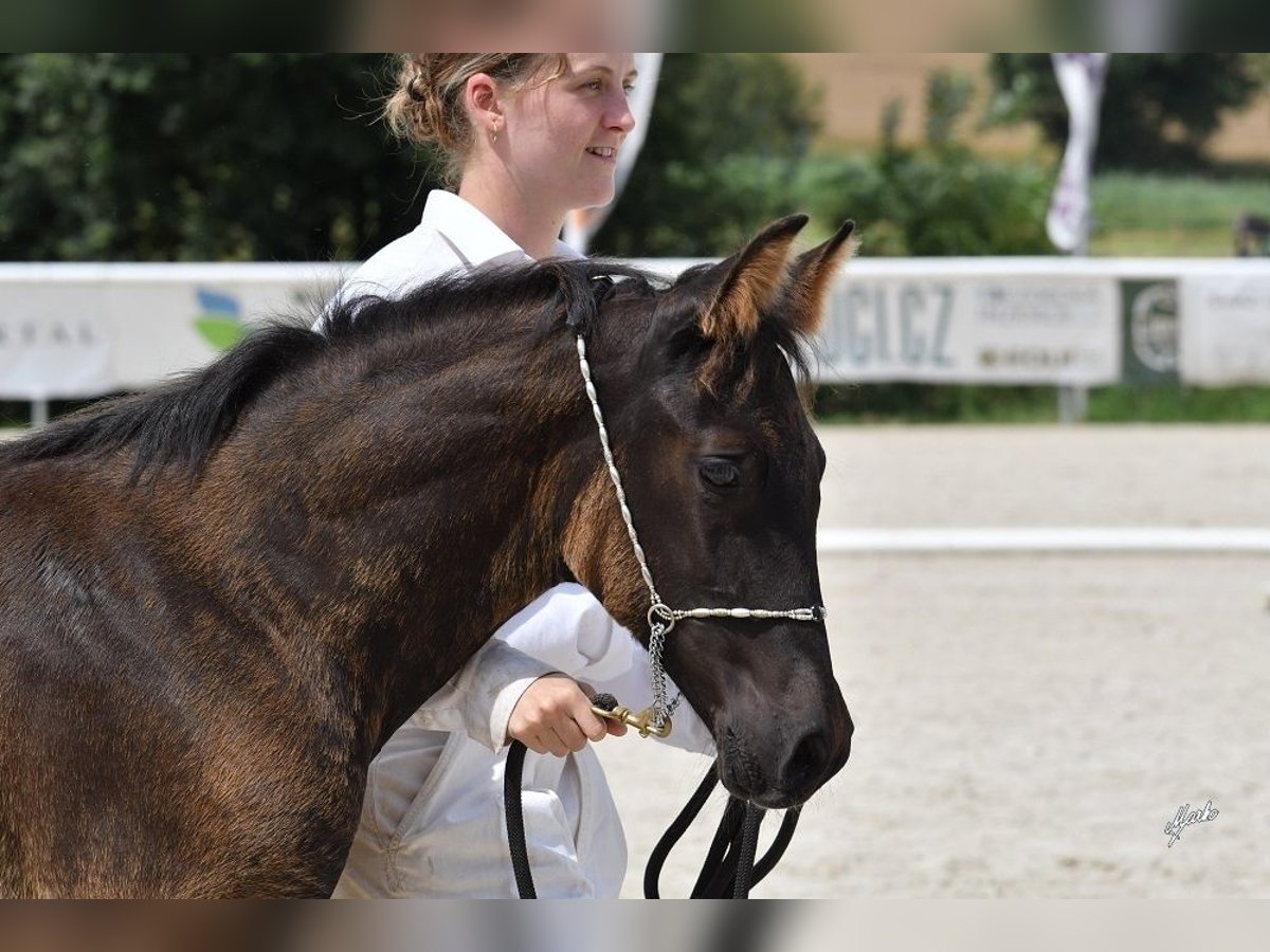 We offer a magnificent Shagya Arabian gelding born in 2021 for sale. The gelding is looking for the best possible home. He lives in a herd 24/7, is familiar with stabling, transport, the veterinarian, and the farrier, and goes out to the field alone and with other horses. He is age-appropriately trained in groundwork and is accustomed to regular human contact. He is currently in riding training. **Features:** - Breed: Shagya Arabian - Gender: Gelding - Year of Birth: 2021 - Color: Black This gelding is not only a real eye-catcher but also a promising young horse with great potential. He is well-suited for sports or as a loyal companion for ambitious riders. Transport to a new home is possible. If you are interested, we look forward to your contact and are happy to provide further information or arrange a viewing.