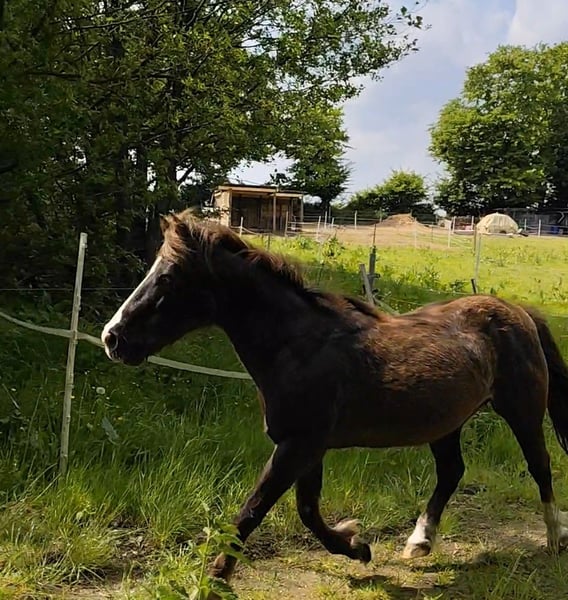 Nur aus gesundheitlichen Gründen unsererseits geben wir schweren Herzens unseren süßen Pony- Wallach ab. Aufgrund der Größe nur von Kindern reitbar. Allerdings -je nach Größe und Können der Kinder- eher nur geführt oder an der Longe. Hier ist er super artig, hört perfekt auf die Stimme. Außerdem ist er absolut verkehrssicher. Wir geben ihn nur in Offenstall- Haltung ab und er benötigt einen guten ( Strom) - Zaun. Das Pony ist robust und grundsätzlich gesund seit dem er bei uns ist ( seit 2007) . Allerdings hatte er bereits Hufrehe. Seit ein paar Jahren ist dies allerdings nicht wieder aufgetreten ( trotz Weidehaltung) . Er ist zuckersüß, sehr charmant und zauberhaft und hat manchmal Flausen im Kopf aber man kann ihm einfach nichts übel nehmen :) Super artig beim Schmied, Tierarzt und auf dem Anhänger. Beißen und Schlagen kennt er nicht. Absolut verträglich mit anderen Ponys und Großpferden!! Kann mit Zubehör ( Sattel, Trense , Winterdecke ( wird eher nicht benötigt) übernommen werden. Uns liegt es sehr am Herzen, dass er in ein gutes Zuhause kommt!! Das hat er absolut verdient!! Händler sind ausgenommen. Bei ernsthaftem Interesse schicken wir gerne weitere Infos, Fotos/ Videos . Besichtigung jederzeit nach Absprache möglich.