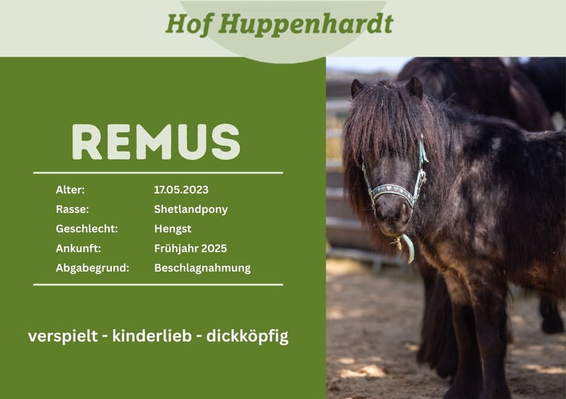 Wir suchen ein neues Zuhause für unserer Shetty Remus. Der am 17.05.2023 in den Niederlanden geborene Hengst wurde von uns im letzten Jahr vom Veterinäramt nach einer Beschlagnahmung übernommen. Aktuell ist er noch Hengst, wird aber zeitnah, noch vor der Vermittlung, bei uns kastriert. Bei uns zeigt er sich neugierig und verspielt. Er steht bei uns zusammen mit den anderen jungen Hengsten, kennt Laufstall und Box. Auch Stuten in Nachbarboxen sind kein Problem. Vermutlich hat er in der Vergangenheit nicht viel kennengelernt. Bei uns kennt er altersgerecht alle Tätigkeiten wie putzen, Hufschmied und Spaziergänge. Mit Bodenarbeit startet er gerade. Remus ist Menschen gegenüber anfangs etwas schüchtern, lässt sich aber überall berühren und fasst schnell Vertrauen. Wir wünschen uns für ihn ein neues Zuhause mit eigenen Menschen, wo er das Pferdeleben richtig kennenlernen kann. Wir sind ein Tierheim für Großtiere. Alle unsere Schützlinge werden nach positiver Vorkontrolle und gegen eine Schutzgebühr vermittelt. Gerne können die Tiere nach vorheriger Terminabsprache bei uns auf dem Hof besucht und kennengelernt werden.