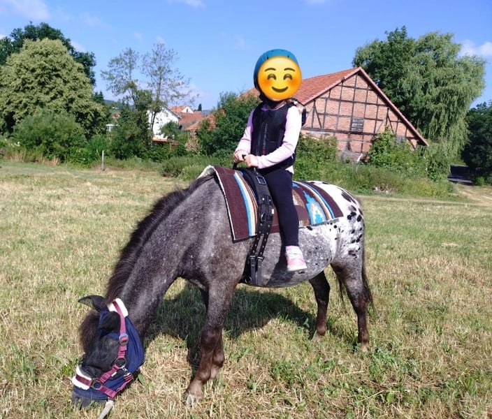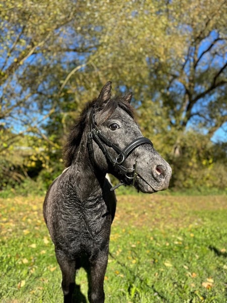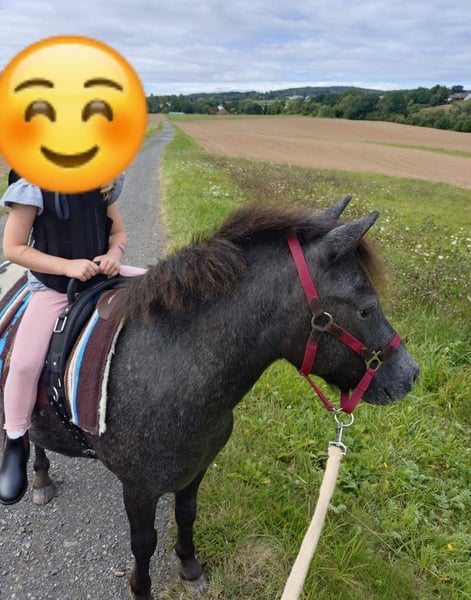 Schweren Herzens bin ich auf der Suche nach einem neuen zu Hause für unseren kleinen Pony Wallach Snoopy (Rufname). - Dt. Partbred Shetlandpony - geboren 6/22 - ca. 110 cm - Schabracktiger mit vollem Papier - gesund (keine Rehe, kein Exem) - steht im Offenstall mit 24/7 Sommerweide - er ist im Schritt und Trab geführt geritten - läuft brav an der Longe und hört gut auf Stimme - ist gelehrig für Zirkustricks und Freiheitsdressur - Hufbearbeitung mit dem Winkelschleifer ist kein Problem (letzte Bearbeitung Mitte Oktober) - Verladen und Transportieren absolut unproblematisch - herdenverträglich, bei uns rangniedrig - E-Zaun sicher - geimpft und entwurmt Ich könnte ihn mir gut bei einer Reitschule mit etwas fortgeschrittenen, kleinen Reitern vorstellen wo er sich unterm Sattel weiterentwickeln kann. Auch als Fahrpony würde er sicherlich bei entsprechender Ausbildung einen guten Job machen. Im Umgang kommt ab und an mal das Shetty durch, dem aber mit Klarheit und Konsequenz ohne weiteres beizukommen ist. Diverses Zubehör kann mit erworben werden. Bei Interesse für diesen witzigen und klugen Shetty Wallach, freue ich mich über Anfragen.
