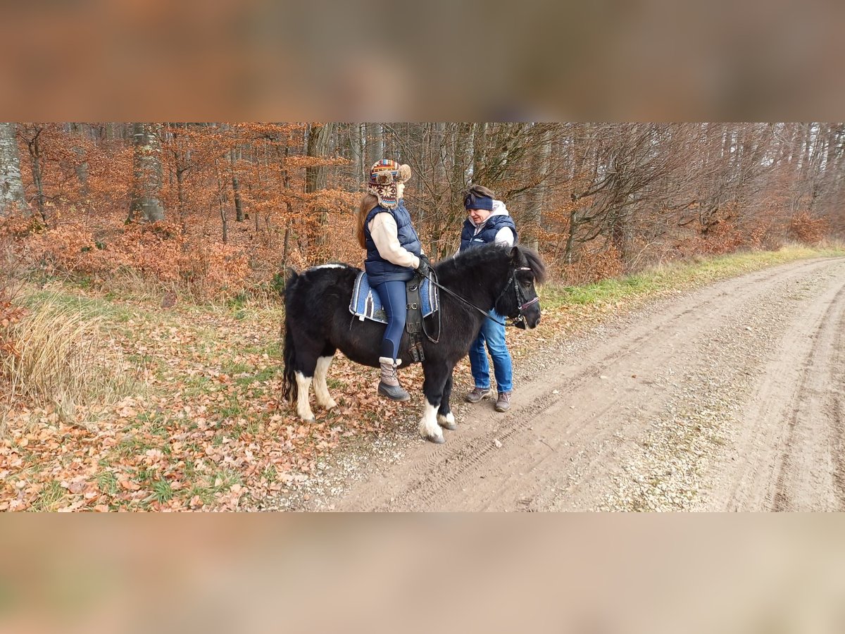 Zum Verkauf steht ein Rappschecke Shetland Pony Wallach, geboren im Jahr 2019. In unserer Familie hat er zwischenzeitlich leider zu wenig Arbeit, weshalb wir ihn schweren Herzens in gute Hände abgeben, weil bei uns die Shetti-Zeit einfach vorüber ist. Wir haben ihn selbst gezogen, der Vater heißt Schneltens Gildor. Er ist ein wenig geritten und gefahren, anständig beim Schmied und im Umgang. Bei Interesse oder für weitere Informationen freuen wir uns auf Ihre Kontaktaufnahme. Ein Besuch vor Ort ist nach Absprache gerne möglich.